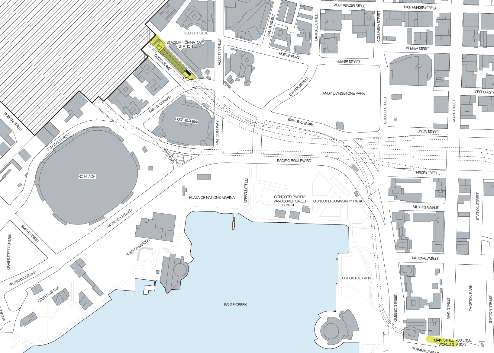 Statium-Chinatown station is one of the original 1985 Expo Line Skytrain Stations in Vancouver, BC. The design is currently insufficient both for daily ridership and, especially, special events at nearby Rogers Arena and BC Place. Hence, through pax modelling studies by Senez Co. and studying site circulation I aided in the concept design for an emerging direction to improve the station’s capacity.
